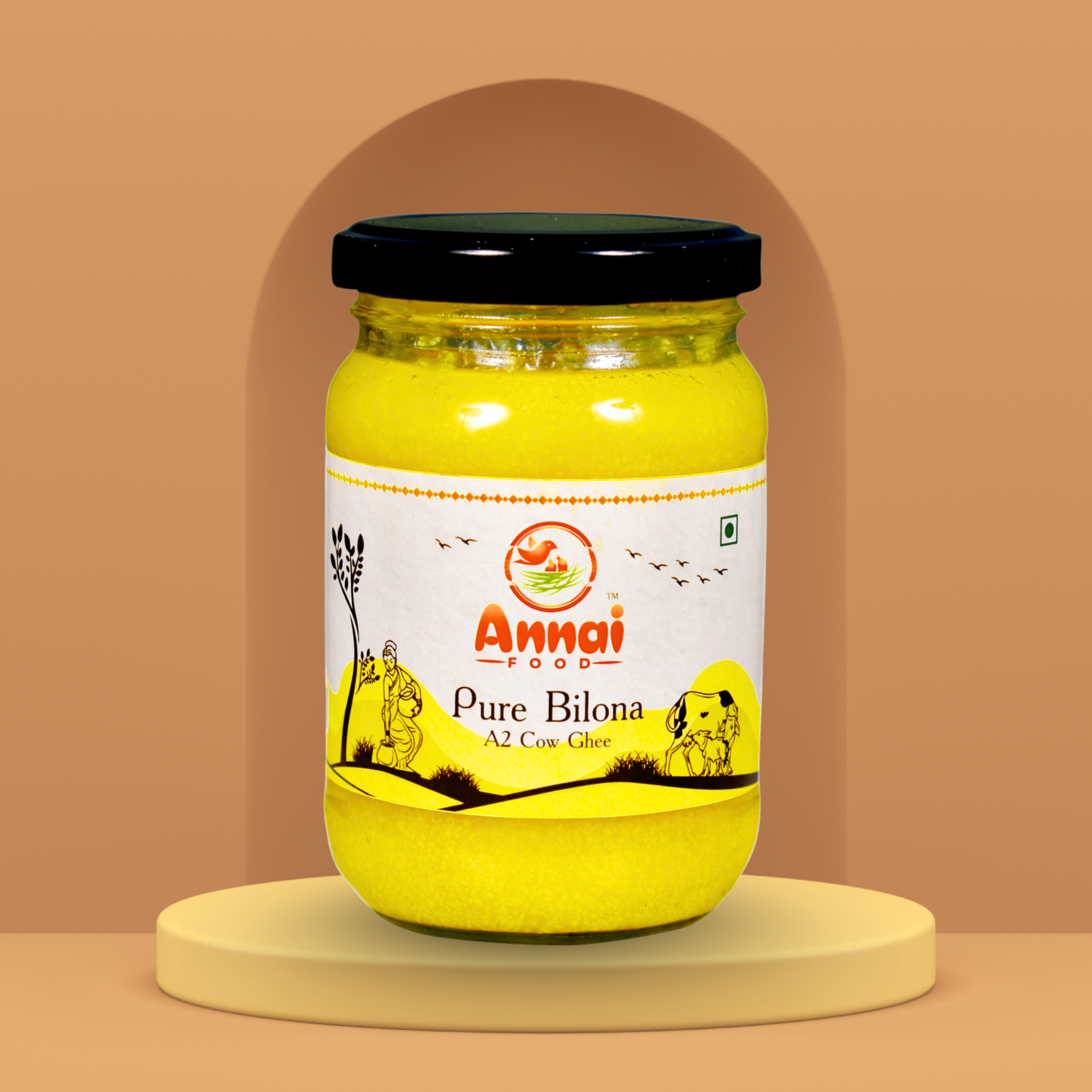 Annai Food Pure Bilona A2 Cow Ghee is made using the traditional Bilona method from the milk of indigenous A2 cows. This age-old process helps retain natural aroma, rich taste, and essential nutrients.
